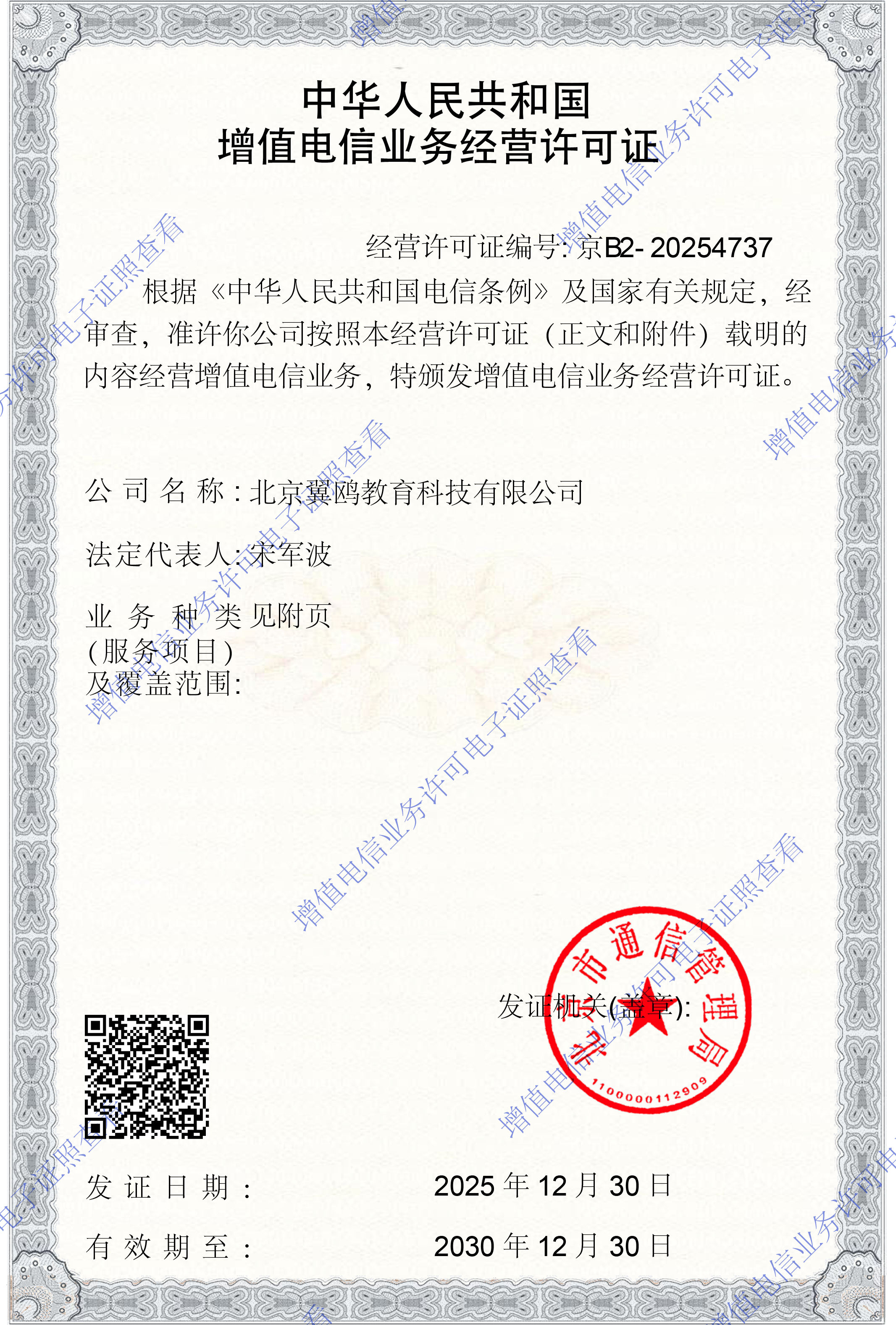 增值电信业务经营许可证:京B2-20254737 营业执照