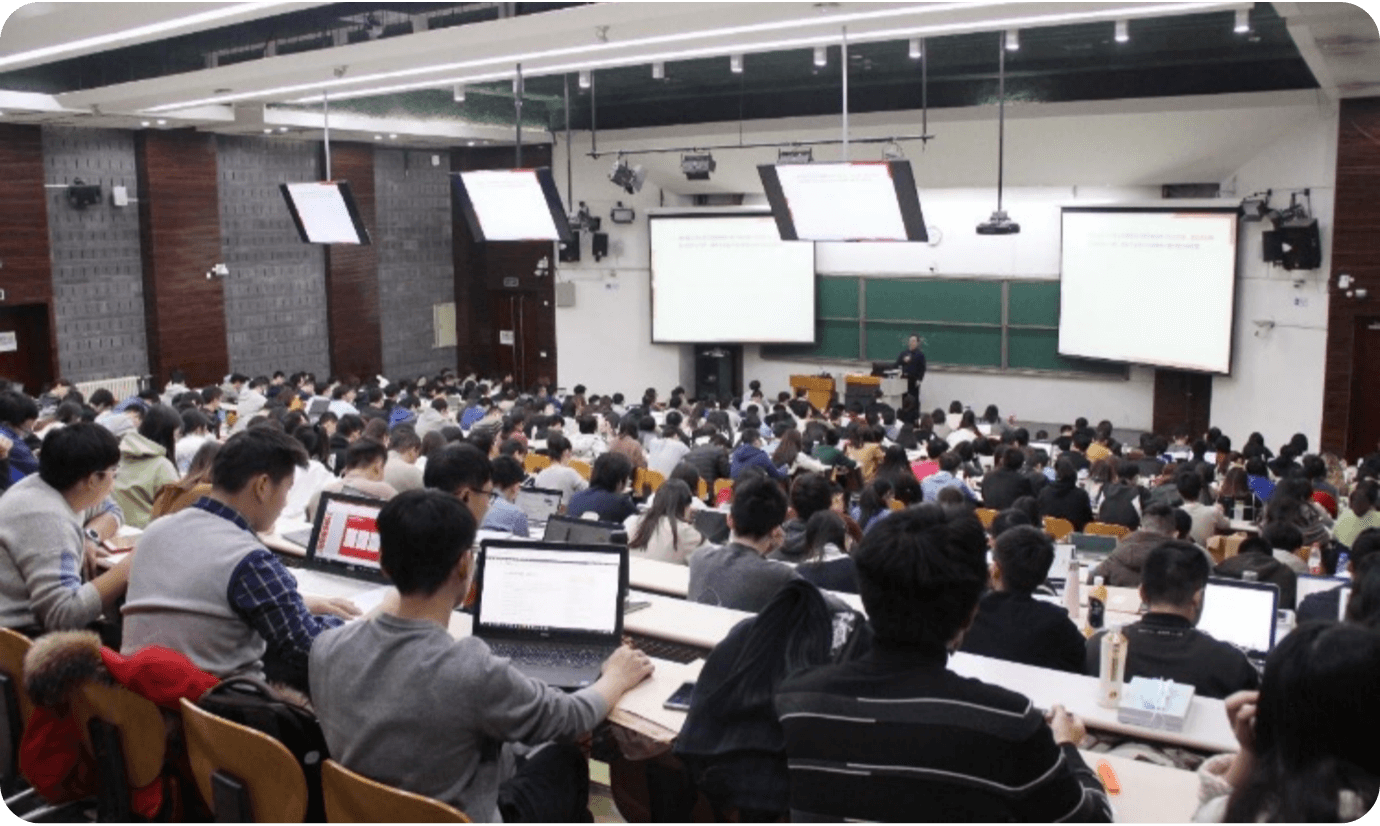 中国海洋大学在崂山校区、鱼山校区所有教 室全部部署 ClassIn 混合教学智慧教室方案。 实现一个老师给两个校区多间教室直播授 课。同时老师在授课时利用 ClassIn 与学生互 动,同步采集、生成的教学数据经过分析进 一步提升教学效果。